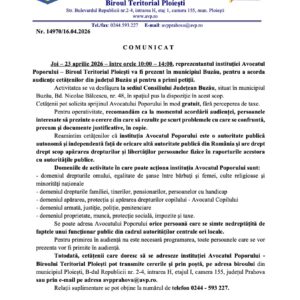 Comunicat – Audiente Avocatul Poporului in data de 23.04.2026 16/04/2026 17/04/2026Anunturi Citește mai multe…
