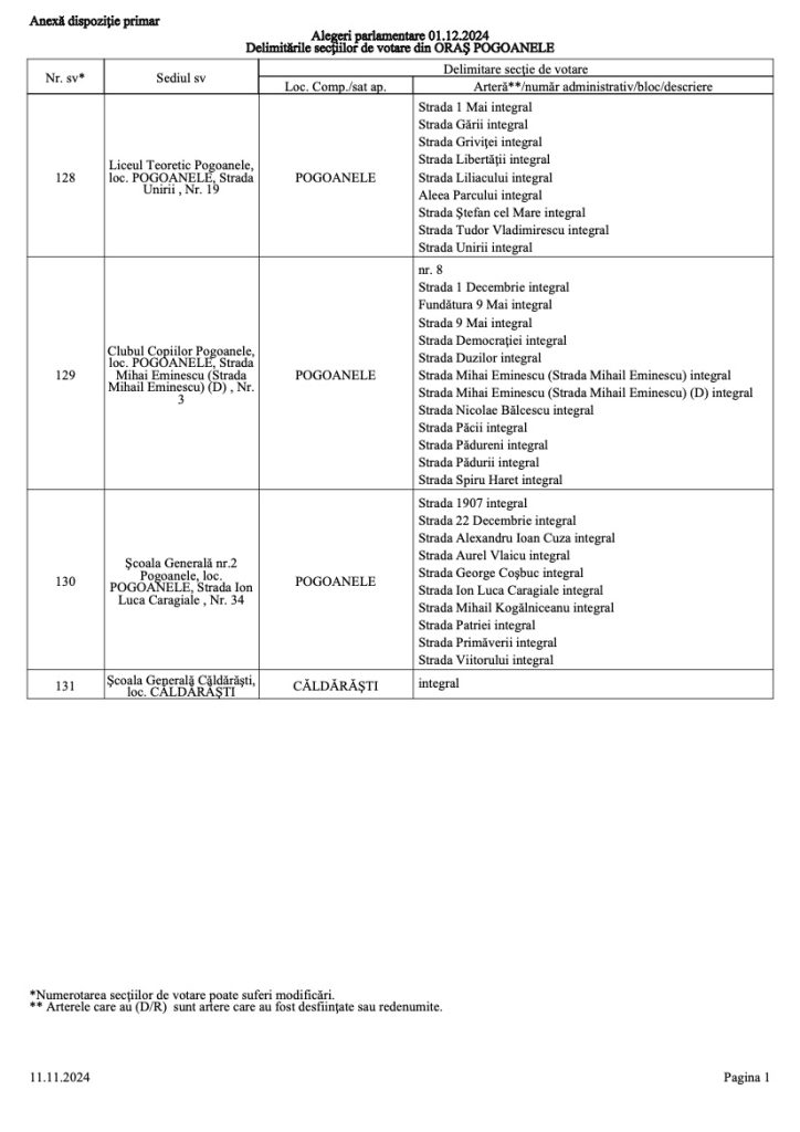 Delimitări Secții De Votare – Alegeri Pentru Senat si Camera deputarilor din 2024